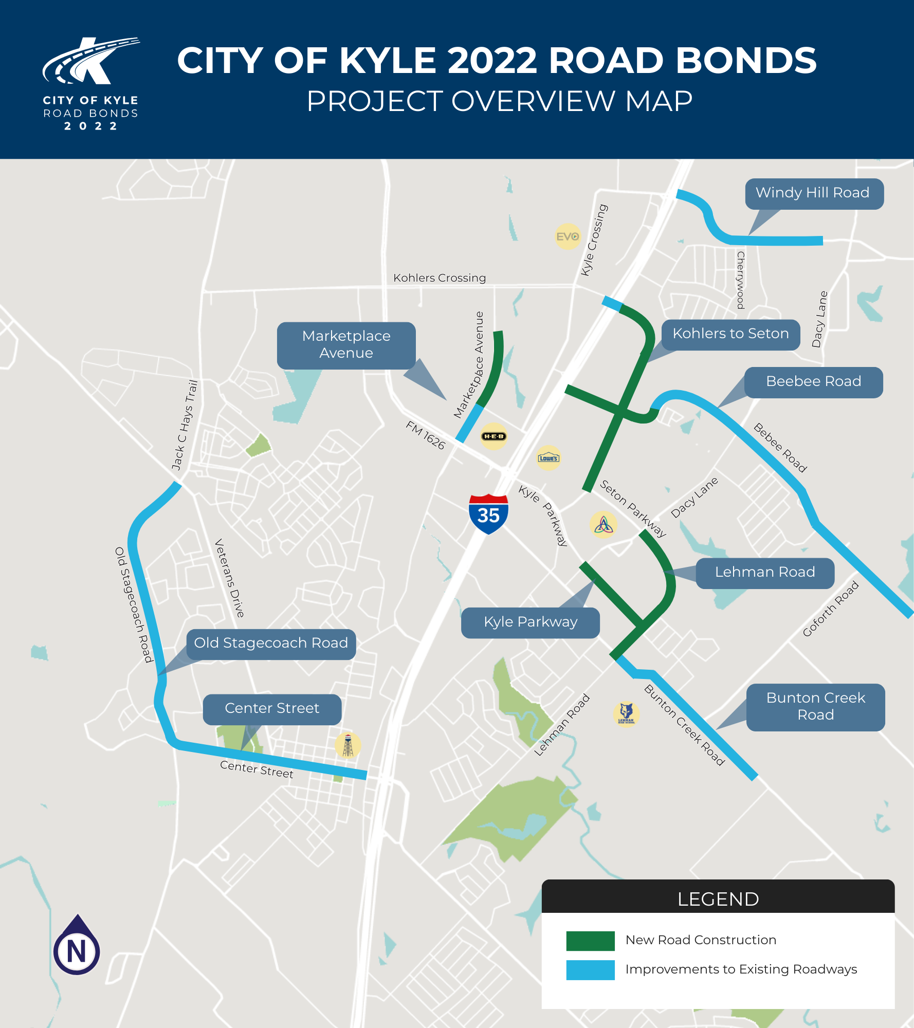 The City of Kyle kicking off 8 major roadway projects across Kyle, adding 10.3 miles of new and improved roads. These upgrades will:
