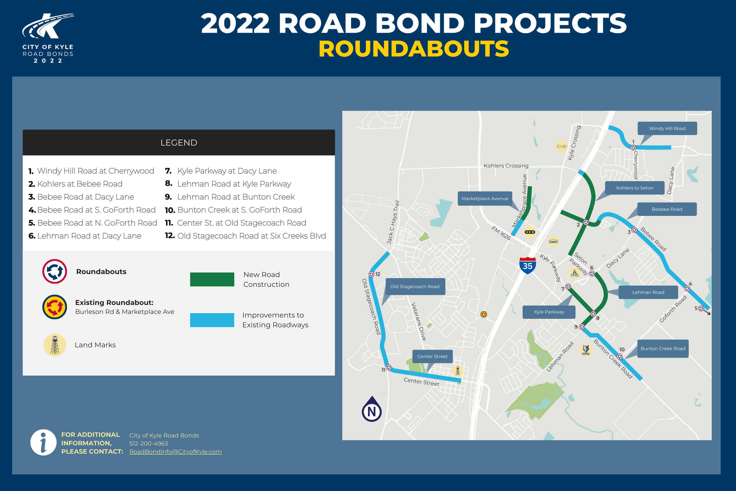 Roundabouts are an important part of Kyle’s roadway improvements. They help reduce congestion, improve safety, and keep traffic moving smoothly.