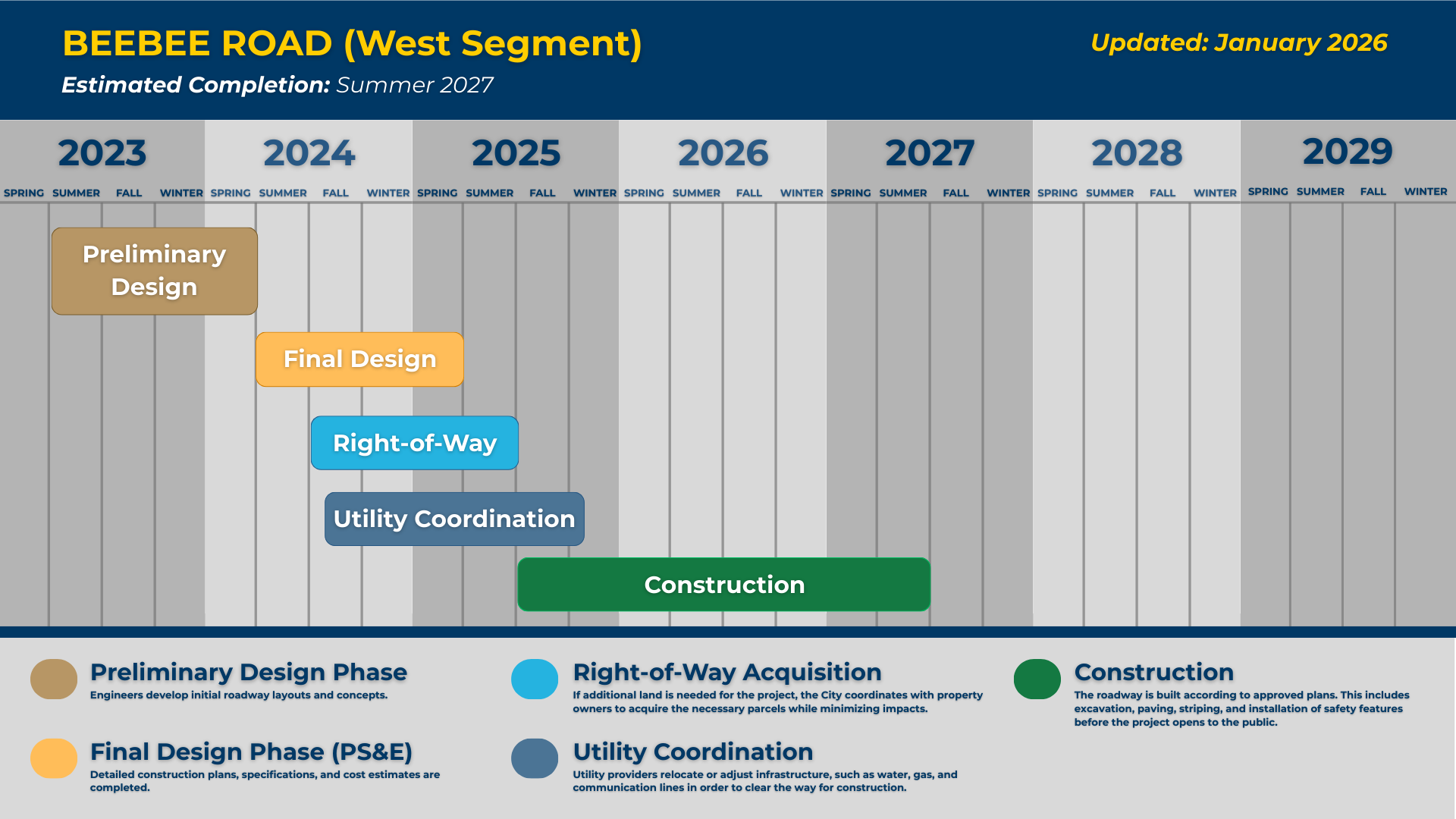 Construction began in Summer 2025 and is anticipated to be complete in Summer 2027