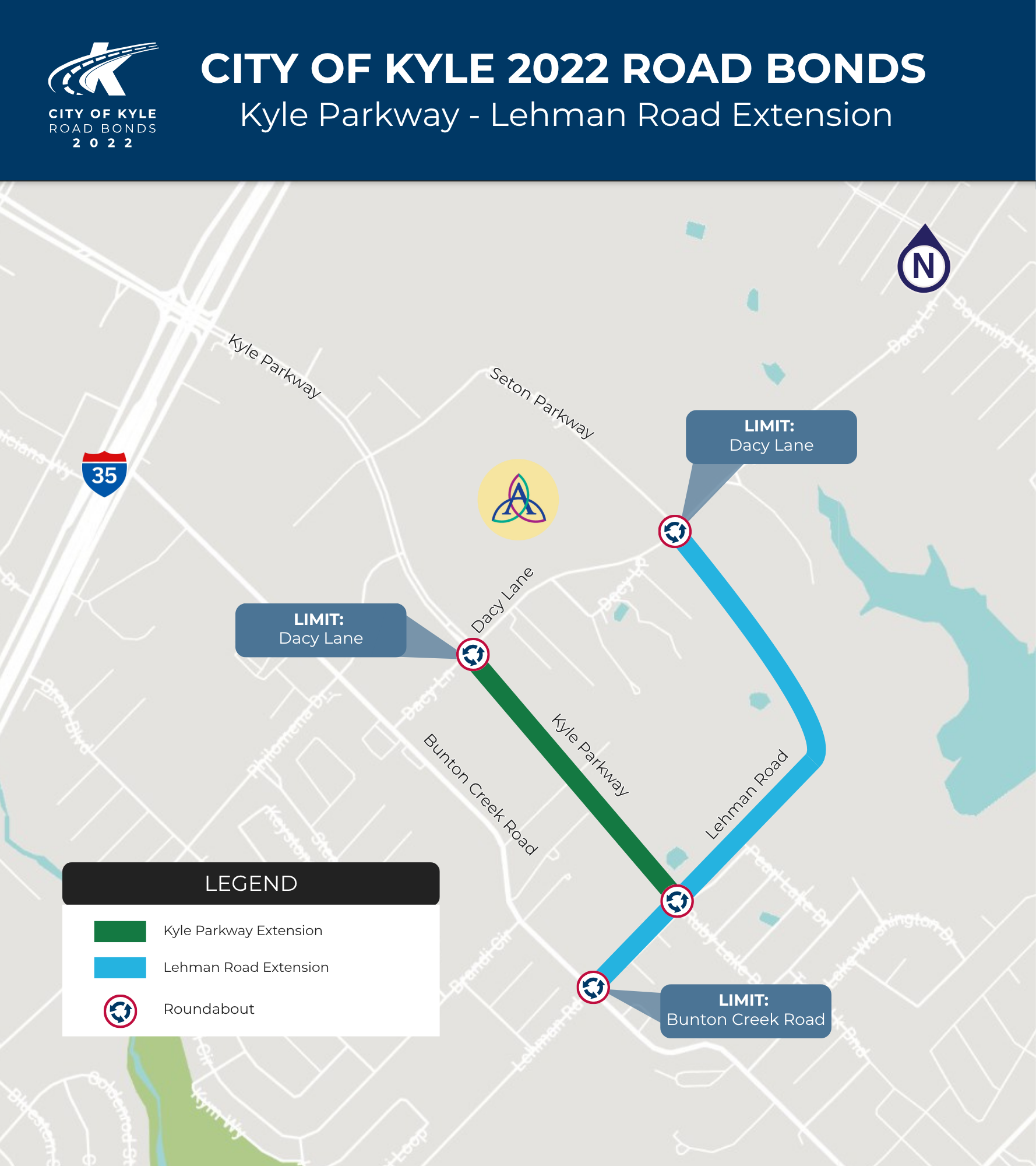 Kyle Parkway and Lehman Road are set to grow! Final designs are due July 21, bringing four new roundabouts and more room for everyone on the road.
