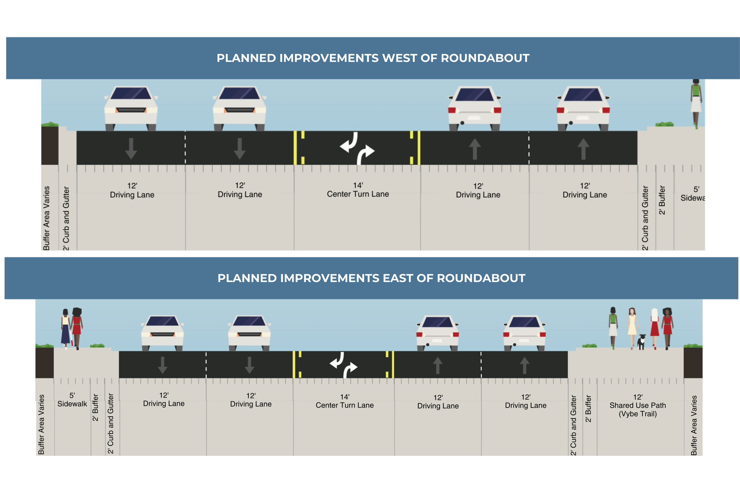 Widening the roadway to add a center turn lane, shoulders and space for mailboxes